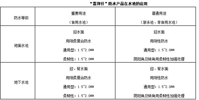 水池根據使用功能、環境條件(地面或地下)腐蝕情況,制定設防要求(按剖面圖)。