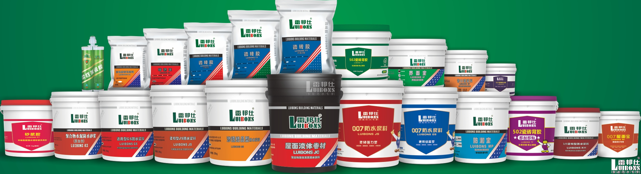 雷邦仕防水專業(yè)家庭防水17年,產(chǎn)品覆蓋防水漿料、液體卷材、墻固、瓷磚膠、瓷磚背膠、美縫劑等,紅的、綠的、藍的、灰的、黃的、白的、黑的多種顏色滿足你需求。