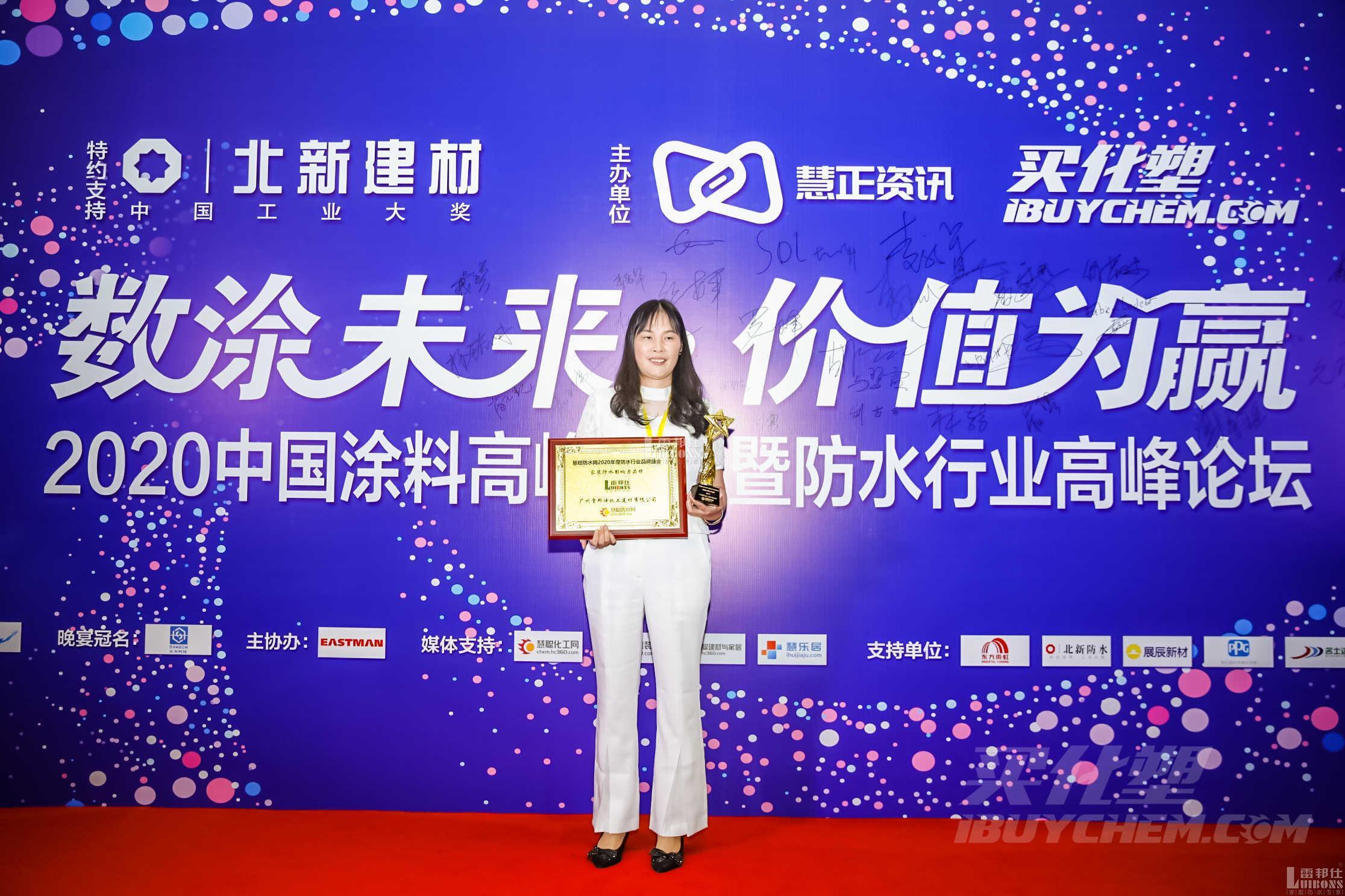 活動中舉行了規模盛大的品牌盛典頒獎活動,對過往一年中具有突出表現的品牌進行表彰。其中雷邦仕憑借卓越的表現榮獲2020=防水行業品牌盛會——家裝防水影響力品牌,雷邦仕盧總在頒獎典禮現場接受采訪。