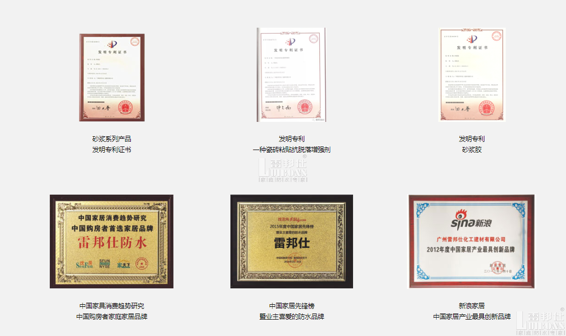 雷邦仕多年來專注家庭防水,專業從事家庭防水材料、施工和應用技術的系統研發及產品推廣。 雷邦仕以進口優質原材料為基礎,憑借積淀深厚的技術實力,結合家庭防水實際需求,17年來,先后開發出通用/柔韌型防水漿料、瓷磚膠、彩色防霉填縫劑、防水膠、堵漏王、屋面液體卷材,及行業獨創產品“防潮寶”、“管口灌漿料”和國家發明專利產品“砂漿膠”、“瓷磚背膠”,形成了完整的家庭防水產品體系,有效解決家庭防水、防潮、堵漏的市場需求。