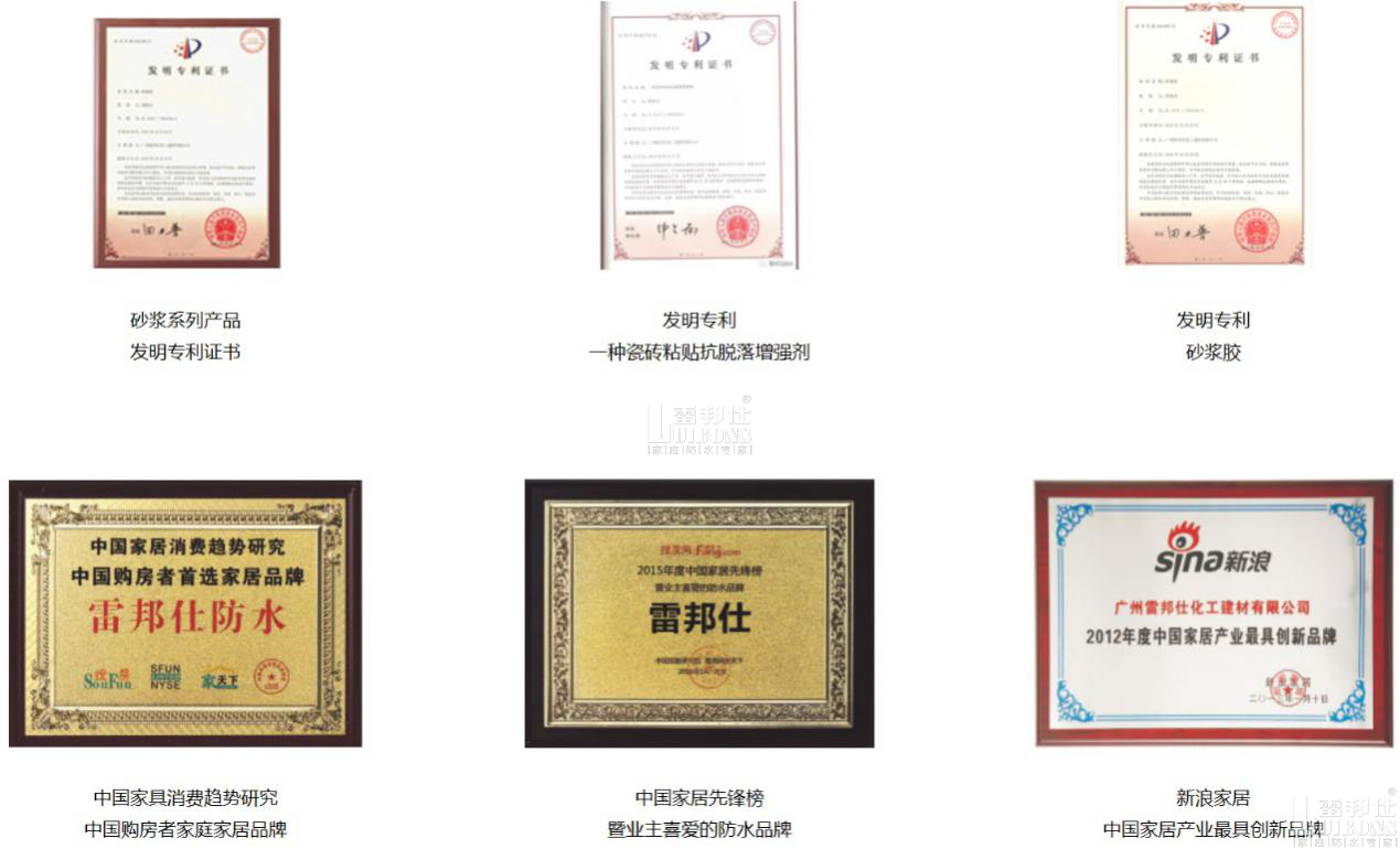雷邦仕自2003年創立以來秉承“立足本土市場,鑄造國際品質”的經營戰略,倡導“以人為本,同進共贏”的核心理念,多年來專注家庭防水,專業從事家庭防水材料、施工和應用技術的系統研發及產品推廣。雷邦仕以進口優質原材料為基礎,憑借積淀深厚的技術實力,結合家庭防水實際需求,18年來先后開發出通用、柔韌型防水漿料、瓷磚膠、彩色防霉填縫劑、防水膠、堵漏王,及行業獨創產品“防潮寶”、“管口灌漿料”和國家發明專利產品“砂漿膠”、“瓷磚背膠”,形成了完整的家庭防水產品體系,有效解決家庭防水、防潮、堵漏的市場需求。