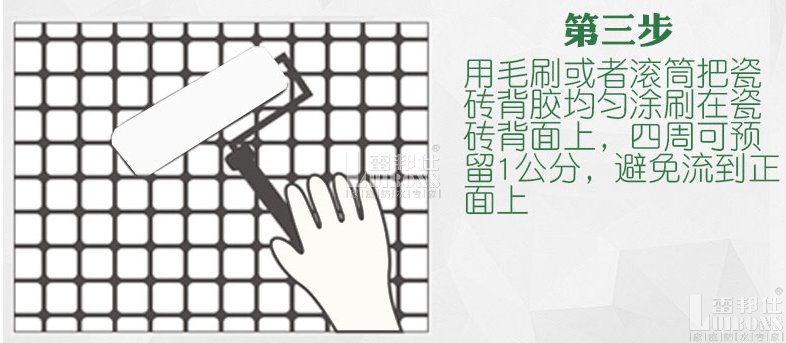 所以,記得選對瓷磚背膠,用對瓷磚背膠。在晾干滾涂過背膠的瓷磚時,一定要做好防護,雷邦仕瓷磚背膠廠家建議在72小時內進行施工。