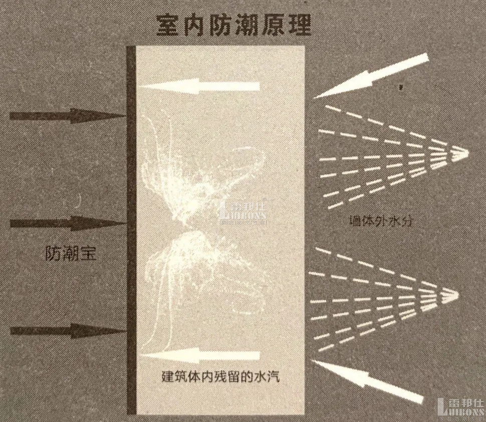 室內防潮,就是通過施工和防潮材料,將滲入建筑和殘留的水汽阻隔在建筑體內,使之往戶外擴散,防止水汽從室內裝飾墻表和地表揮發時侵蝕表面裝飾材料,以此保護室內設施。