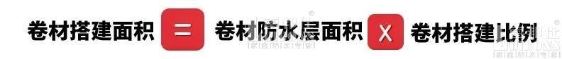 防水卷材用量主要是由卷材防水面積、附加層面積及卷材搭建面積三部分組成,它的計(jì)算公式為: