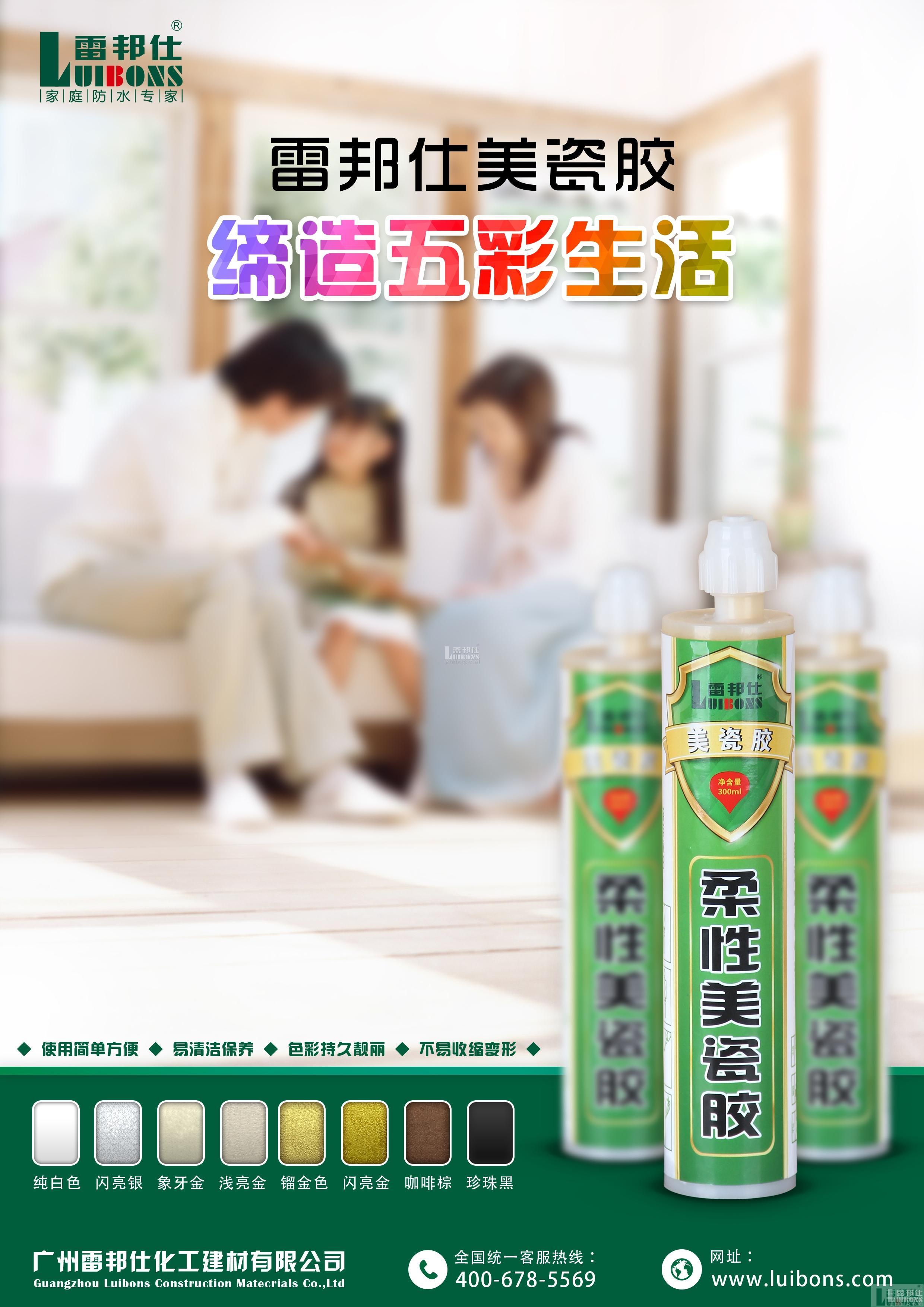 雷邦仕柔性美瓷膠擁有優越的產品功能和性能。在美觀性上,雷邦仕柔性美瓷膠擁有獨特的釉面,色彩豐富、鮮艷;在防霉能力上,雷邦仕柔性美瓷膠可以長效防霉,使縫隙可以拖洗,減少縫隙滋生細菌概率;在性能方面,雷邦仕柔性美瓷膠耐酸堿,耐洗刷,耐水泡,耐油污;在力學穩定層面,不收縮,不開裂,不粉化 ;在環保上,無有毒氣體及重金屬,對人體和環境無危害。所以,如果你在面對市面上各種各樣、令人眼花繚亂的瓷磚美縫產品感覺到頭疼,不知道該如何選擇的時候,不妨考慮雷邦仕柔性美瓷膠。
