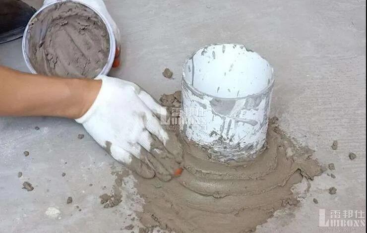以每1kg粉料約需0.28L清水的比例。首先將適量清水倒入凈容器內,逐漸加入雷邦仕堵漏王的同時進行快速攪拌,直至形成無團結的均勻粘稠膩子狀粉料。