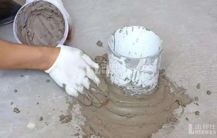地面做防水實際上和墻面類似,只不過比墻面多了一個步驟,也就是管口灌漿。剛裝修的衛生間、廚房、陽臺都有一些水管,水管旁邊有很多小空隙,如果這些空隙堵不住,后續就很容易漏水。將雷邦仕的管口灌漿料在倒進管道周圍后,漿料會膨脹,迅速填充這些空隙,達到防漏的效果。
